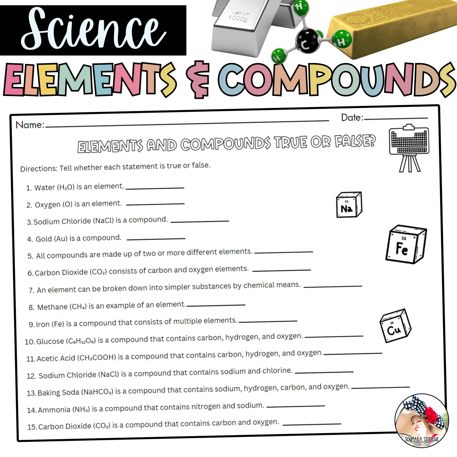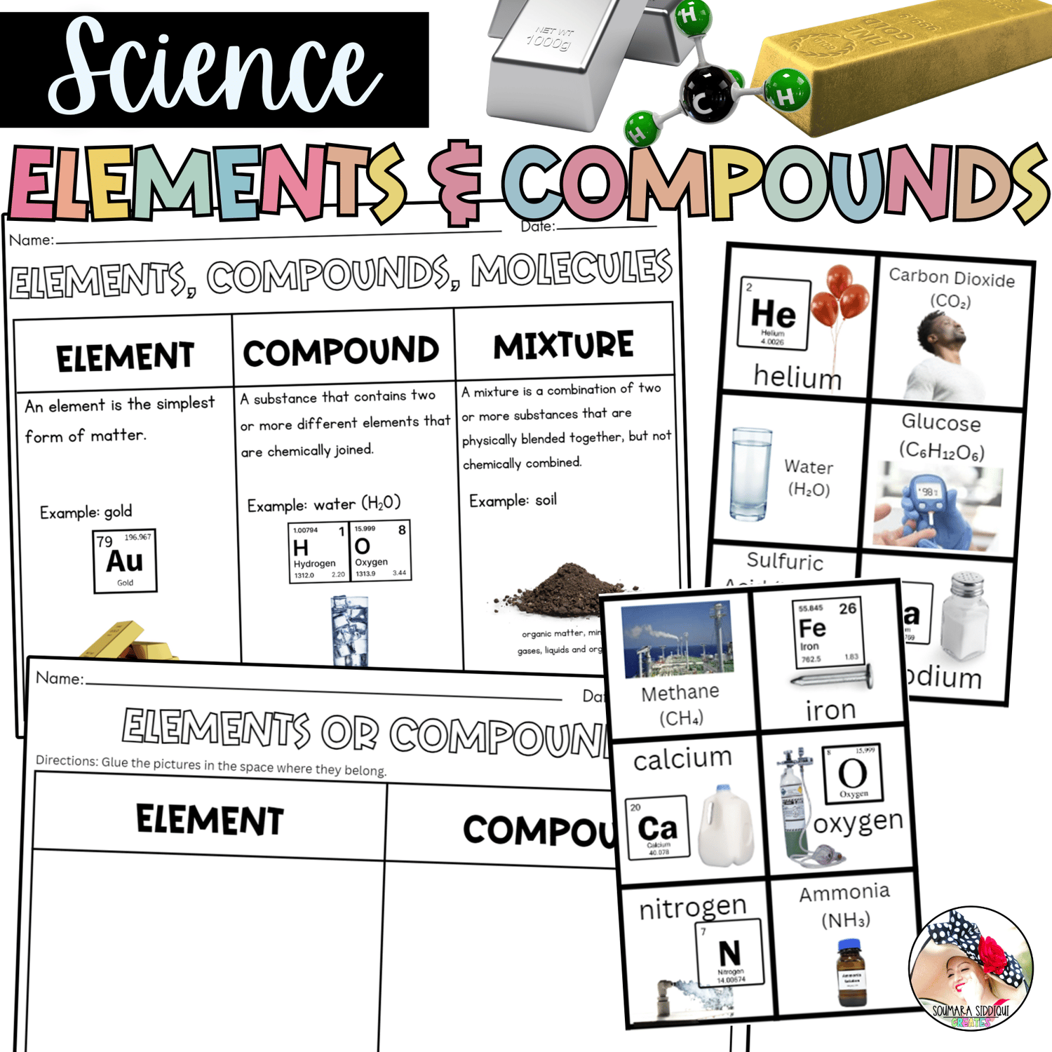 - Elements and compounds pictures to cut and sort