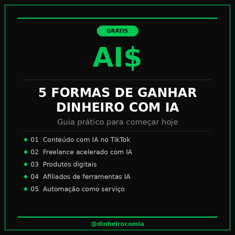 Guia prático com 5 métodos reais para gerar rendimento online usando ChatGPT e ferramentas de IA. Sem investimento. Sem experiência técnica.