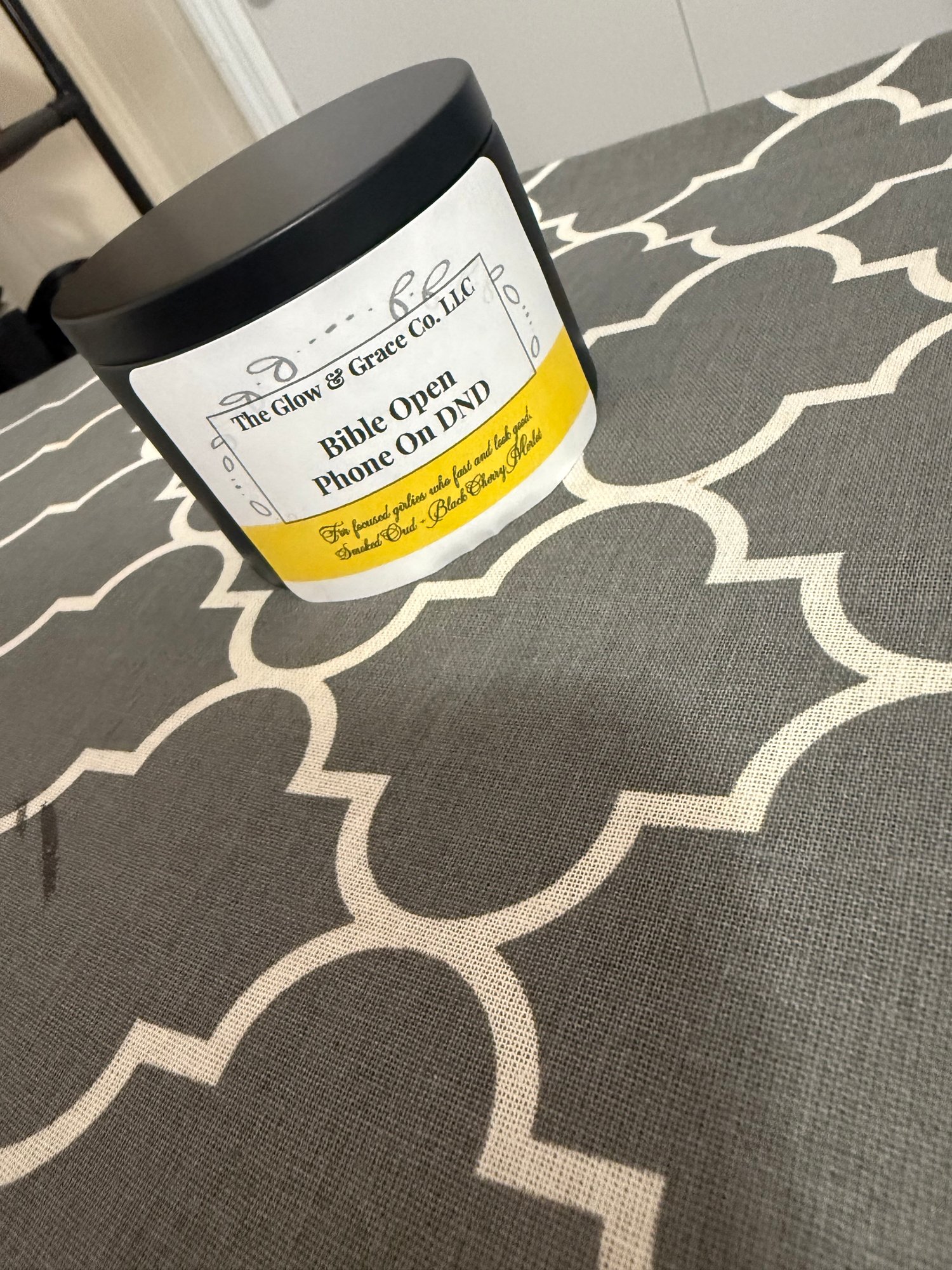 Because sometimes you have to shut the world out to tap in with The Word. Bible Open, Phone on DND is a grounding, serene blend of smoked oud and black cherry merlot that sets the mood for focus, prayer, and peace.