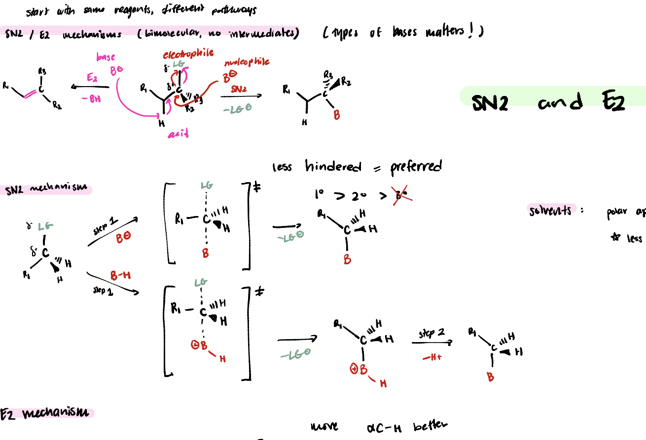 this organic chemistry summary sheet includes the basic SN2 and E2 organic reaction mechanisms. ideal for undergraduate introductory organic chemistry.