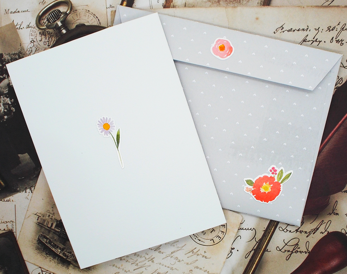 White - Conjunto artesanal de cartão e envelope para rapariga/senhora (item único)