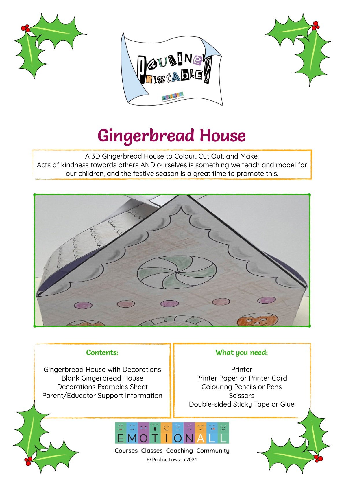 Acts of kindness towards others AND ourselves is something we teach and model for our children, and the festive season is a great time to promote this. The Gingerbread House PDF is a fun way to help you pass on this teaching.