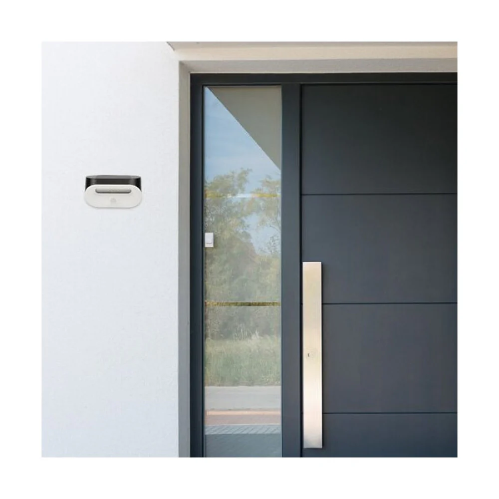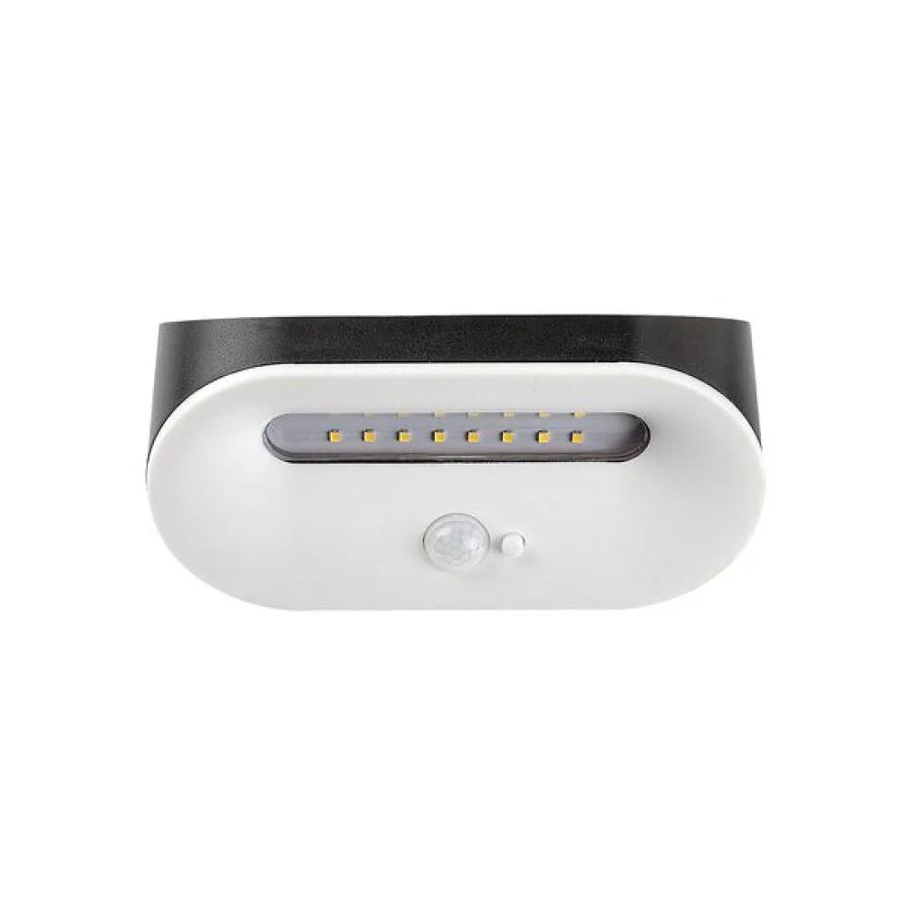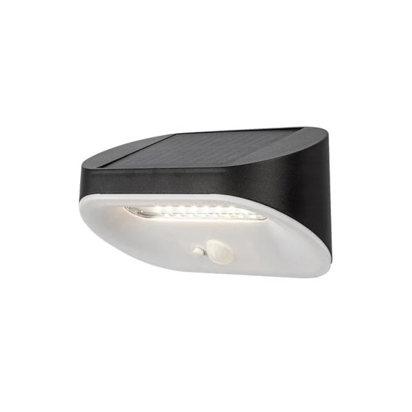 The Brezno outdoor solar wall light with a modern style and motion sensor is primarily recommended for terraces or the exterior walls of houses, where it can be used to illuminate the walkway leading to the front door. This elegant, rounded model is entirely made of black plastic with a white lampshade.