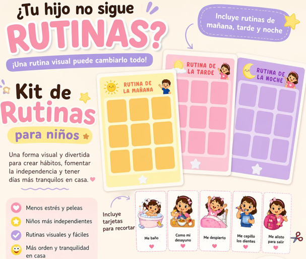 ✨ Reduce berrinches y estrés en casa✨ Fomenta la independencia✨ Crea hábitos saludables✨ Hace las rutinas más claras y visuales