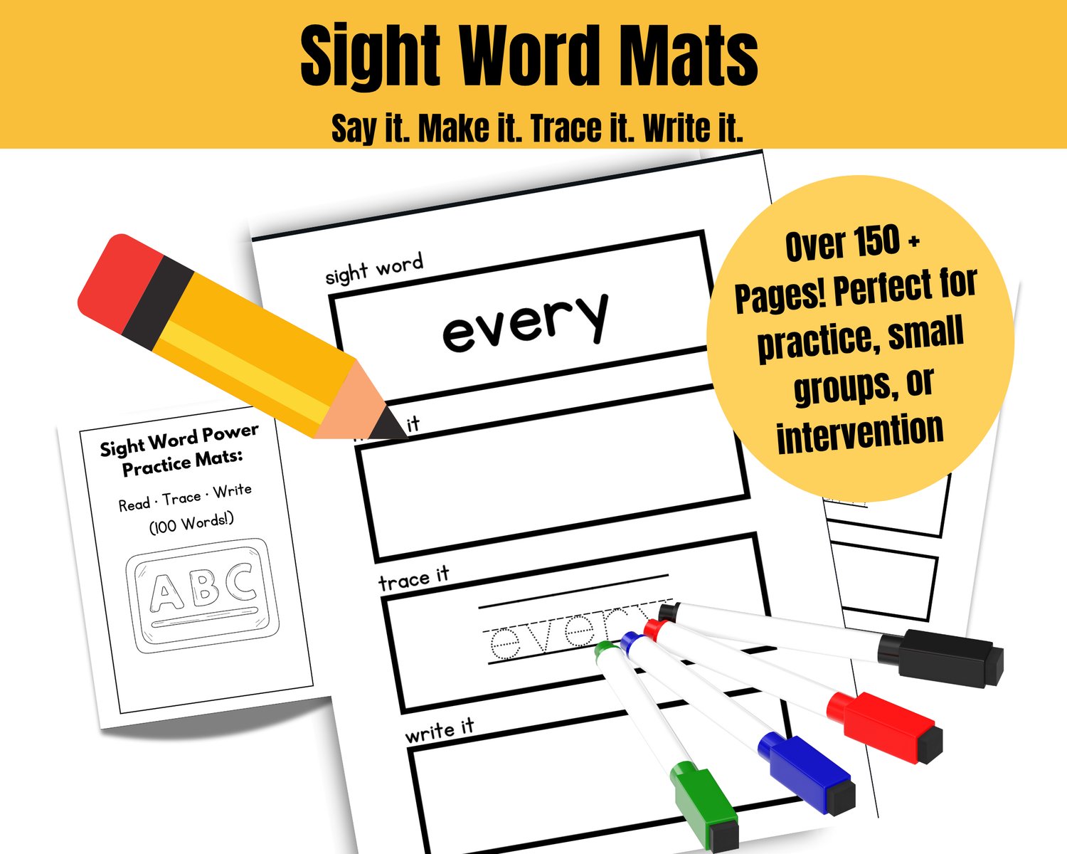 This mega bundle includes 200 printable sight word mats designed to help your students build fluency, word recognition, and confidence through fun and effective practice. Each mat provides a variety of activities including:
