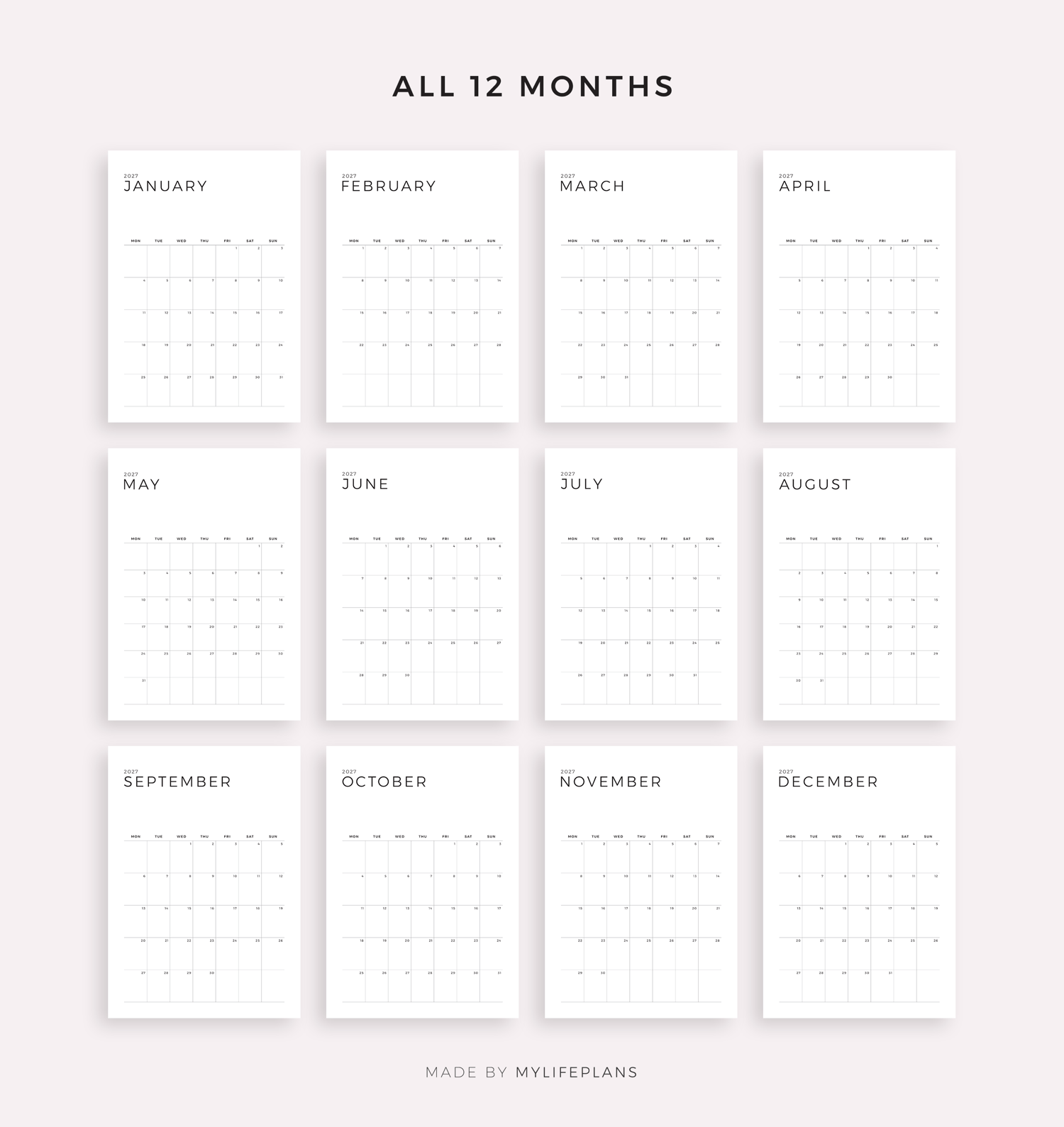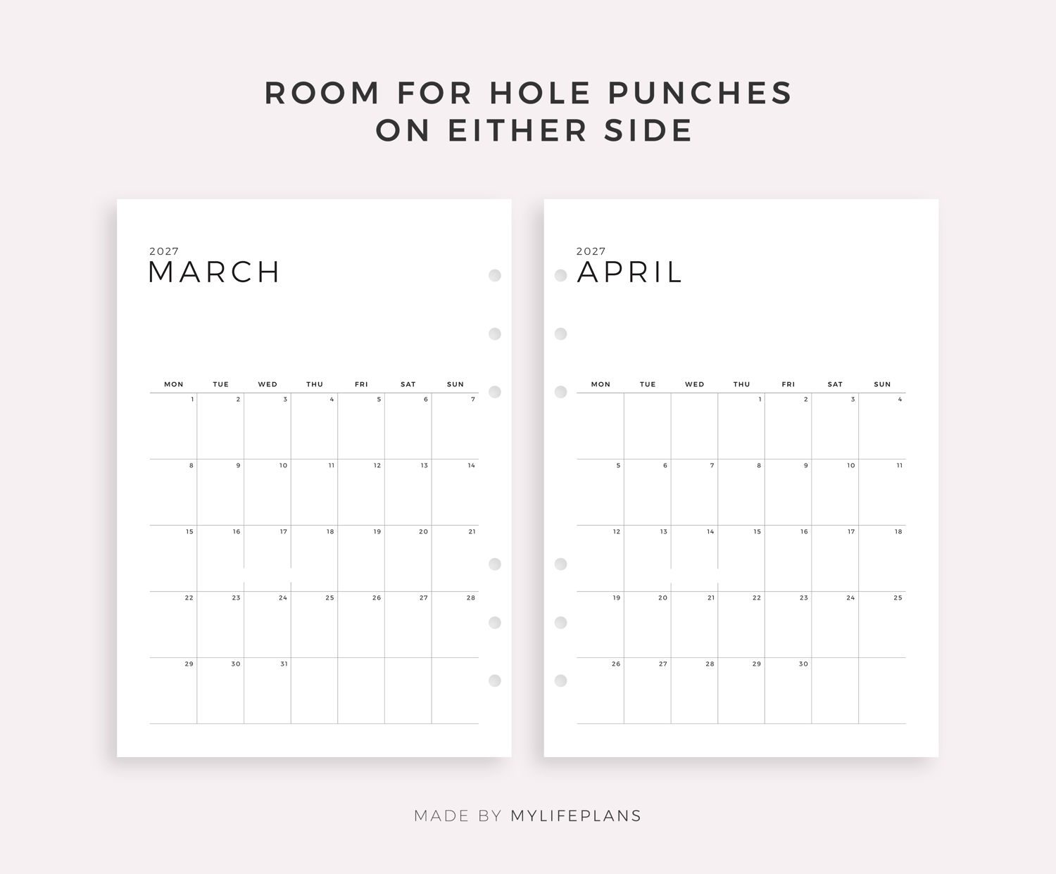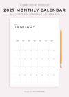 2027 Monthly Calendar Printable & Fillable, A4/Letter Size