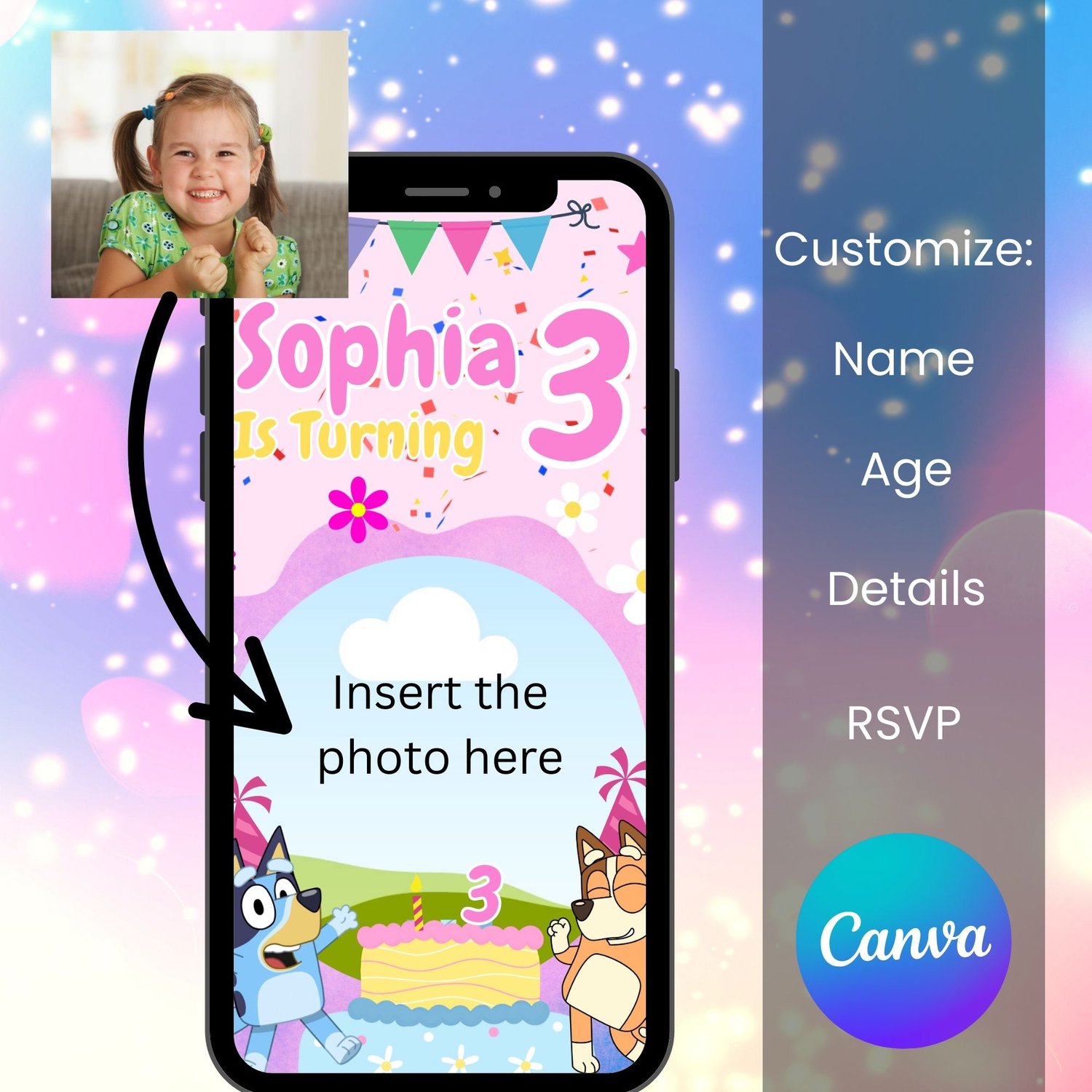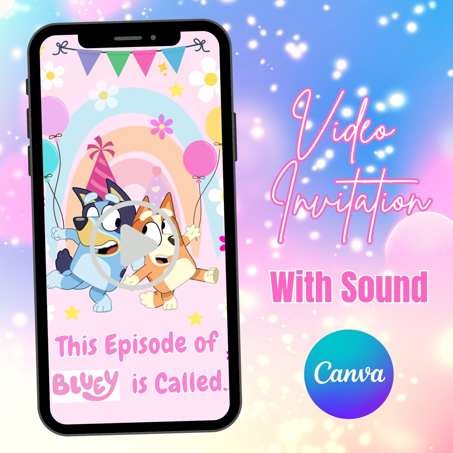 Bluey Birthday Video Invitation – Editable & Instant Download for Kids Party Canva Template, Bluey Birthday Invitation