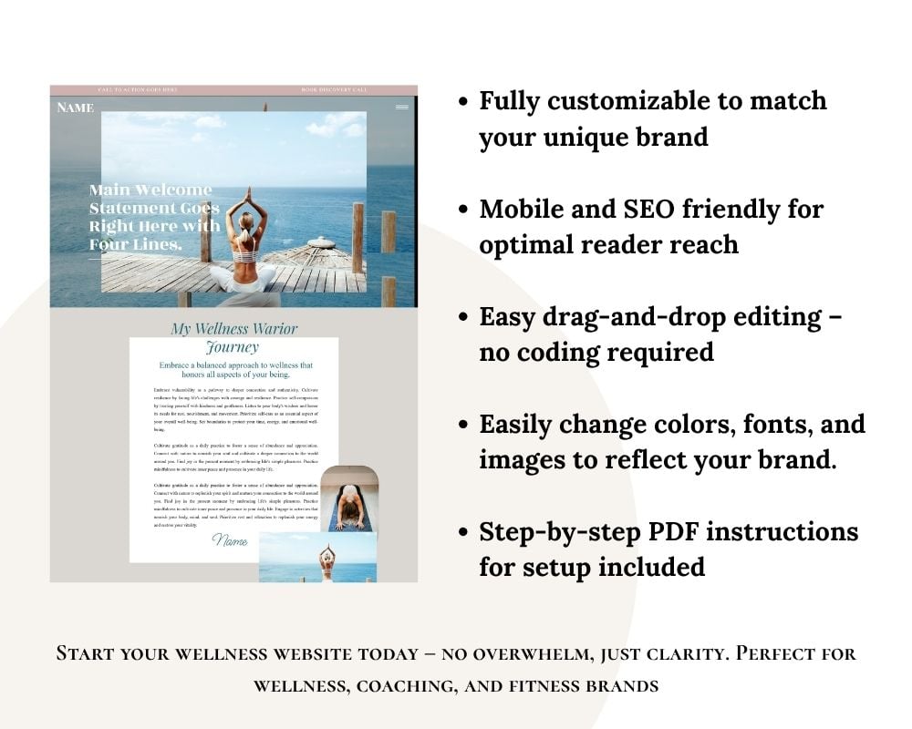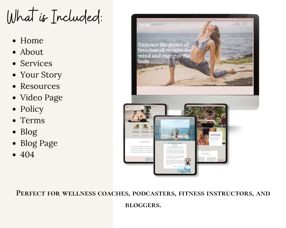 Perfect for: fitness coaches, wellness instructors, life coaches, therapists, yoga teachers, nutritionists, podcasters, content creators, and bloggers