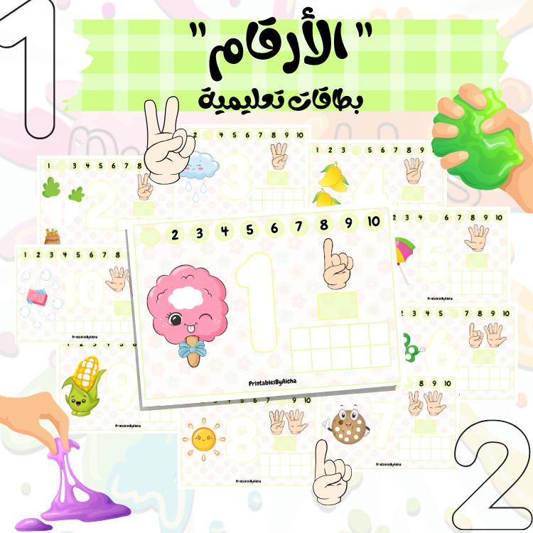 بطاقات "PrintablesByAicha" لتعليم الأرقام من 1 إلى 10 هي الحل المثالي!