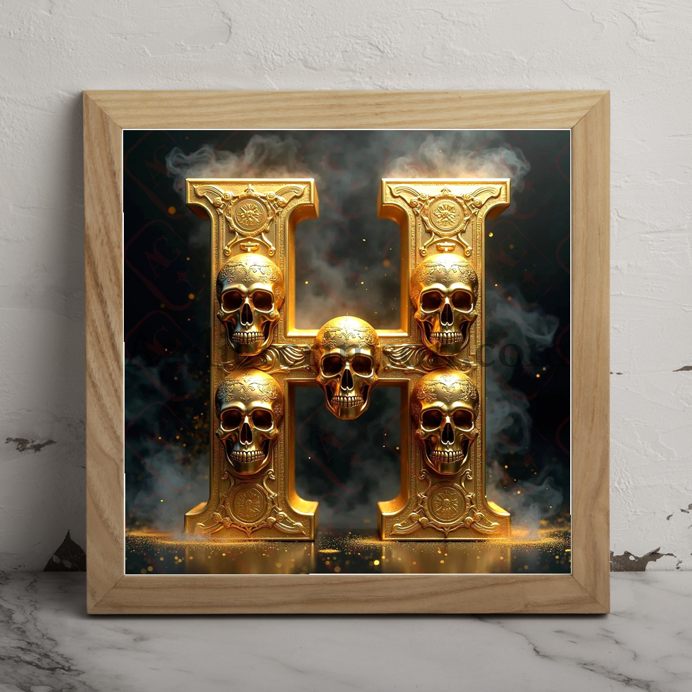 The letter H gold maya skull