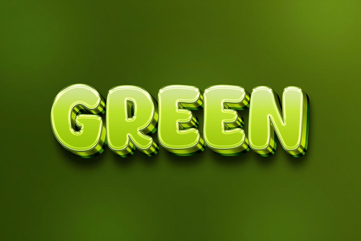 Features a bold, glossy 3D style with a vibrant lime green color palette that gives it a fresh, energetic, and modern appearance. Conveys a polished, dynamic, and eye-catching aesthetic perfect for playful or futuristic design themes.