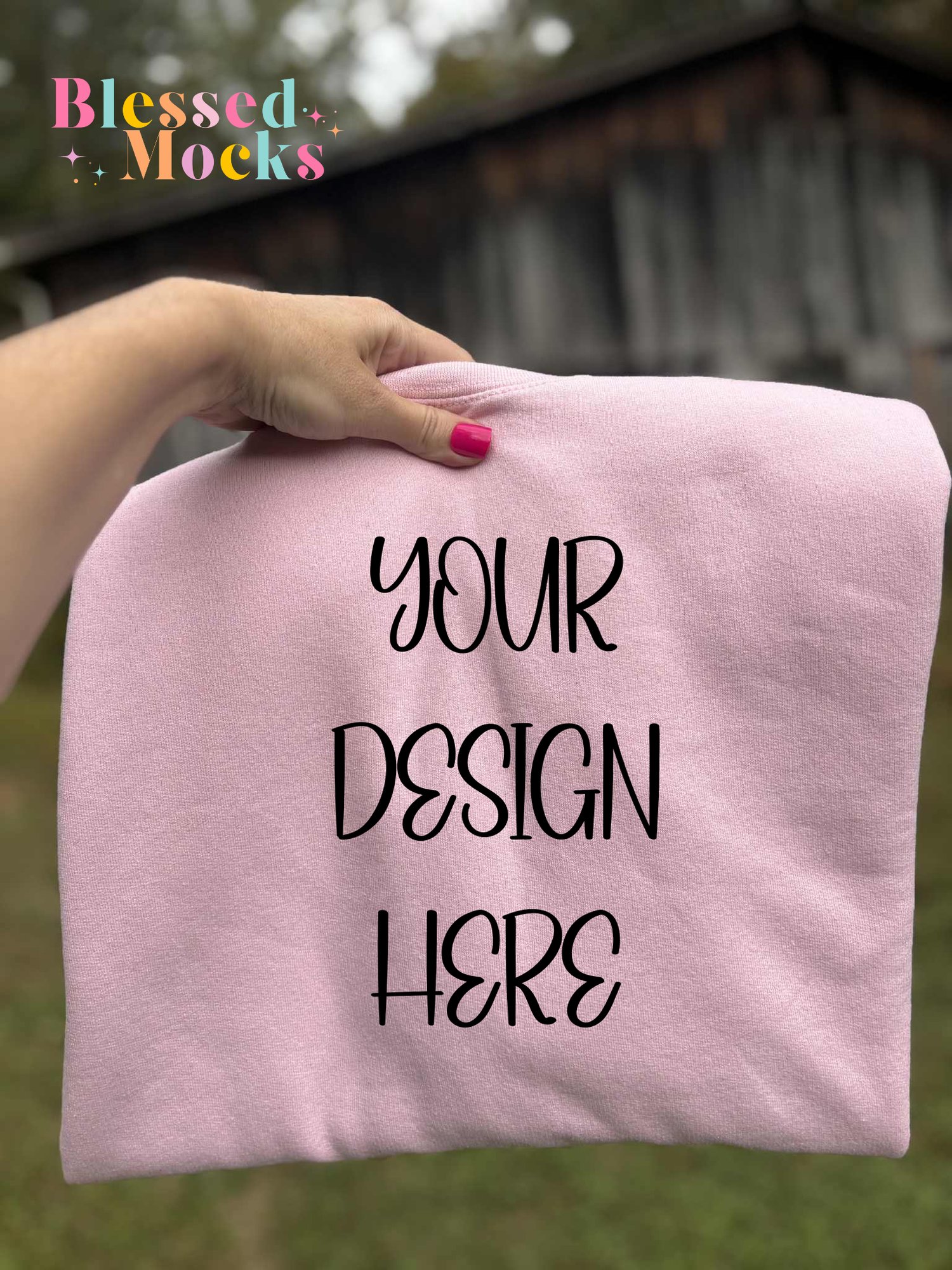 Gildan Light Pink Sweatshirt Rustic Barn Mock Up- IRL