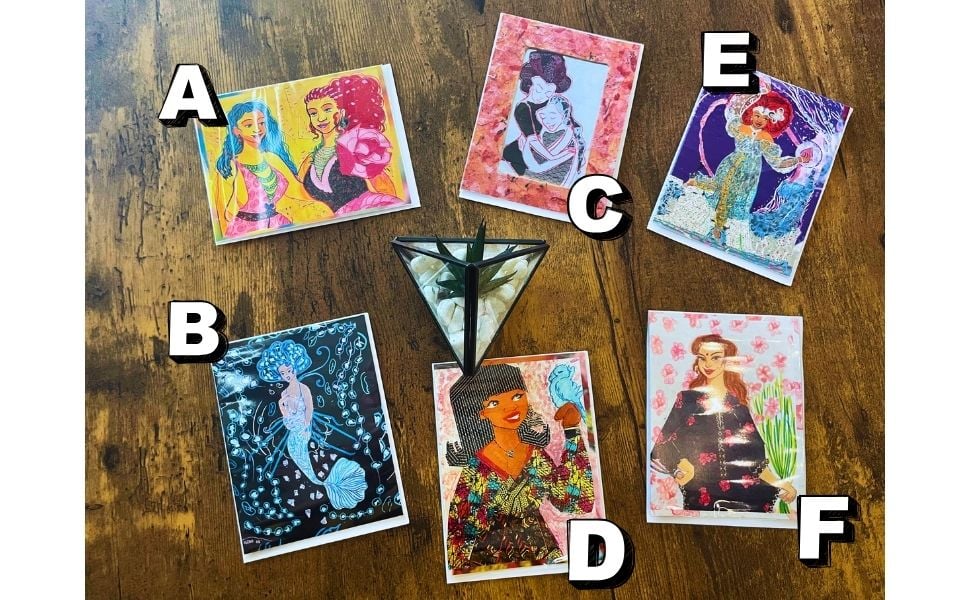 Each card embodies Nakia Shade’s signature blend of Afro-Asian folklore, collage aesthetics, and luminous storytelling — perfect for art lovers, collectors, and those who cherish meaningful correspondence.