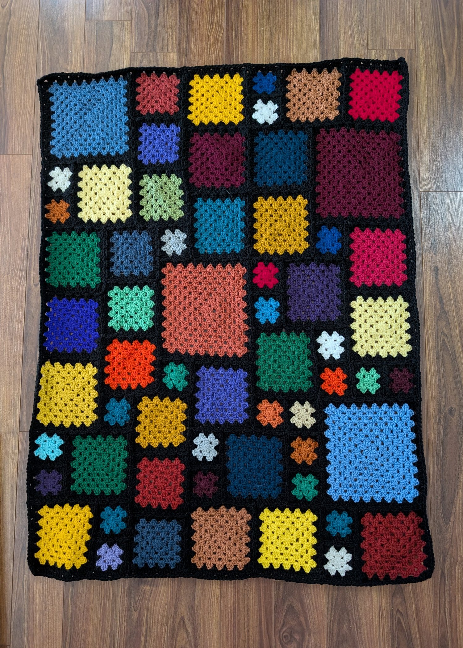 Finished size: is approximately 15.3 x 12 times bigger than your 3-round square. Sample measures 50” x 37”.