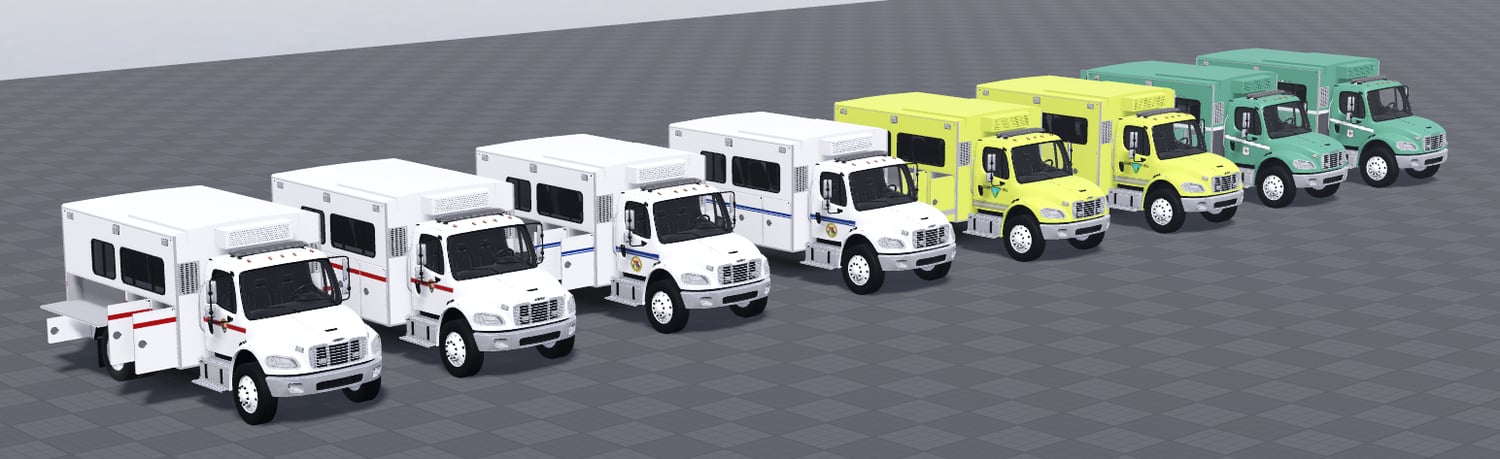 Based off of 4 vehicles/liveries from BME, YouTube, and Instagram. This pack comes with 4 different unique Liveries. All four liveries are 99% accurate to real life. This includes 3 stages of ELS and 3 stages of directionals. The vehicle also comes with A-chassis so it isn't static. The vehicle doesn't come with any sirens so you will have to add your own. Each vehicle comes with two variants, one has opening compartments while the other doesn't.