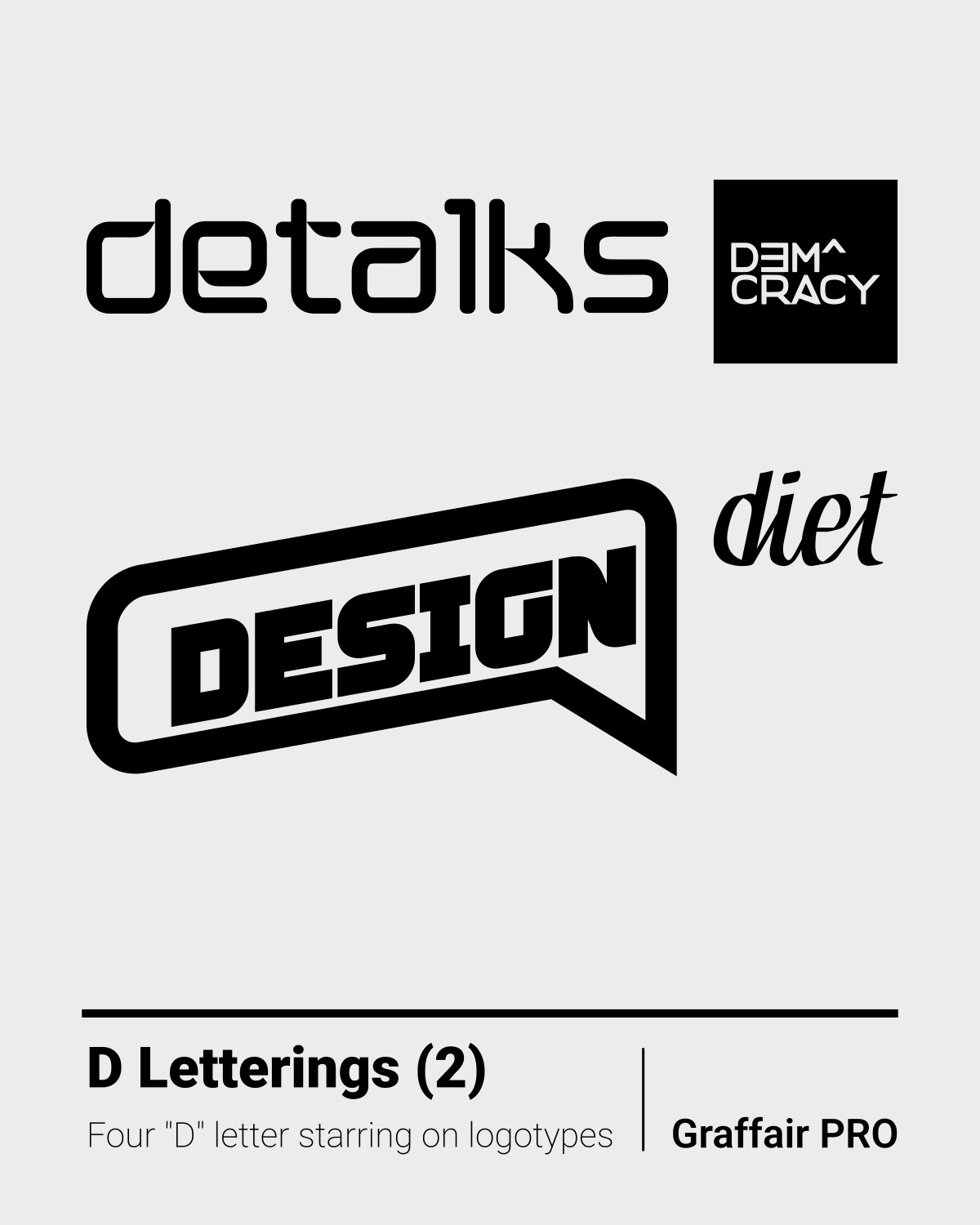 D Letterings (2): The 2nd set of "D" logo/letterings with four original designs. These letterings are included among 800 other extraordinary ones in the "800 SVG Letterings" bundle edition.