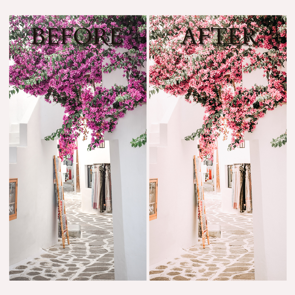 Transform your photos into stunning visual stories with our "Summer in Greece" Lightroom Presets. Designed to evoke the vibrant and enchanting essence of a Greek summer, these presets will bring your images to life with a warm, sun-soaked glow and the rich, timeless colors of the Mediterranean.