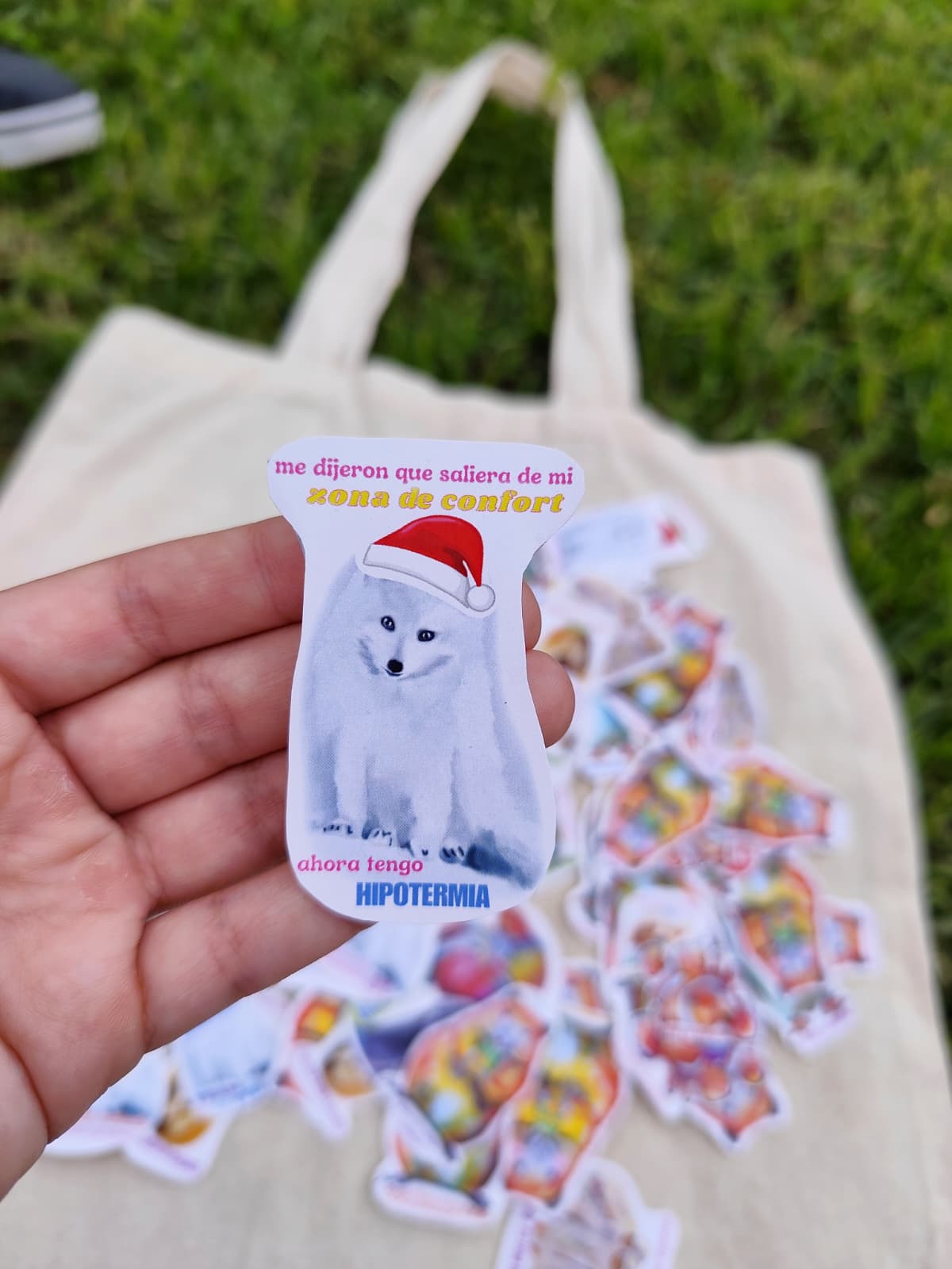 Sticker zorro ártico "me dijeron que saliera de mi zona de confort, ahora tengo hipotermia"