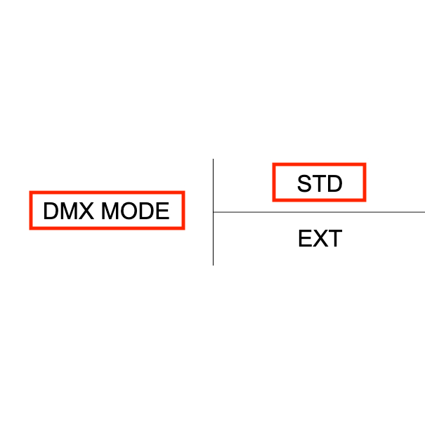 * Verifique, desde el display del equipo, que el menu Dmx Mode muestre los modos STD y EXT.