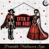Halloween Door Sign, Printable Skeleton Party Sign, Enter If You Dare Sign, Spooky Decor, DIY Sign, Skull Home Decoration