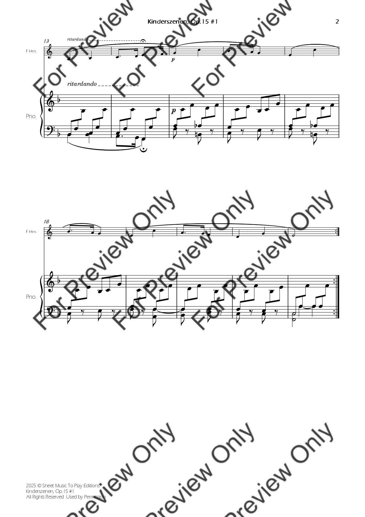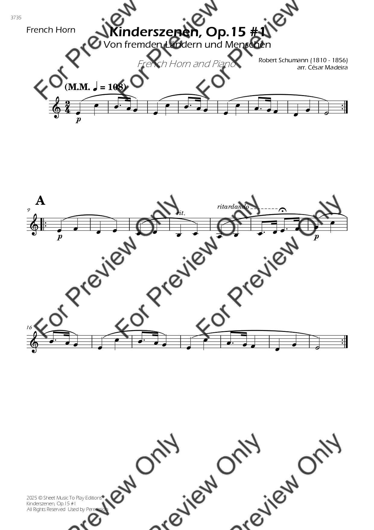Kinderszenen No.1, Op.15 by Robert Schumann. Arrangement for French Horn and Piano. With Full Score and Individual Parts. Have fun!