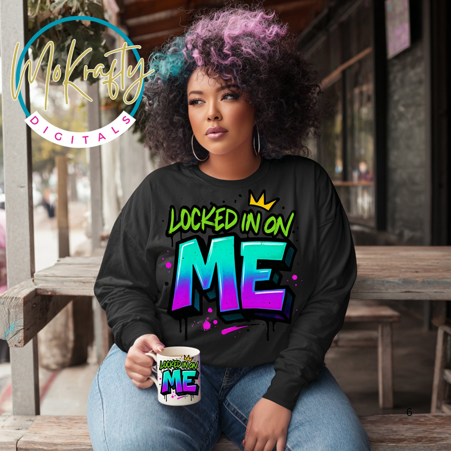 locked in on me, motivational design, png bundle, dtf ready png, sublimation bundle, graffiti png, glitter png, gold png, varsity png, pink png, empowerment design, aesthetic png, craft business files