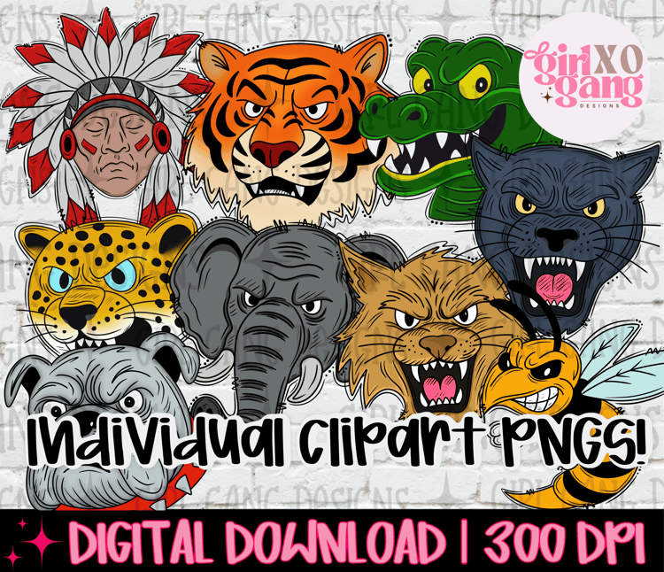 This listing is for my preppy mascot team designs. This is a lifetime so it will include all past, current and future of these PNG designs but excludes any custom teams that are not in here. - Watermark will be removed once purchased *Not a cutting file*