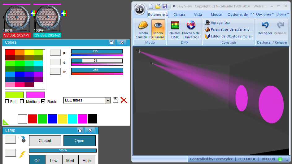 Esta Librería SSL2 está optimizada para trabajar con Magic 3d Easy View. Es decir para ver una representación 3D de las secuencias que estemos realizando con Freestyler, QLC+ o cualquier otro soft que se conecte con Magic 3d.
