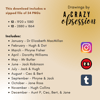 This digital download includes 12 months of Miss Fisher's Murder Mysteries characters. Each image includes the calendar for that month. They come in two different sizes: 1920x1080 and 2880x1864.