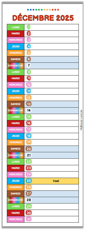 Calendriers pour la maternelle 2025 - 2026.
