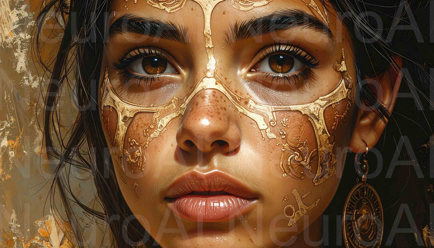 Stunning portrait with golden intricate face art