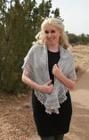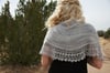 Firm blocking opens up the Garter Stitch body of the shawl, changing the gauge from the standard one-stitch-to-two-rows to 13 sts by 20 rows.