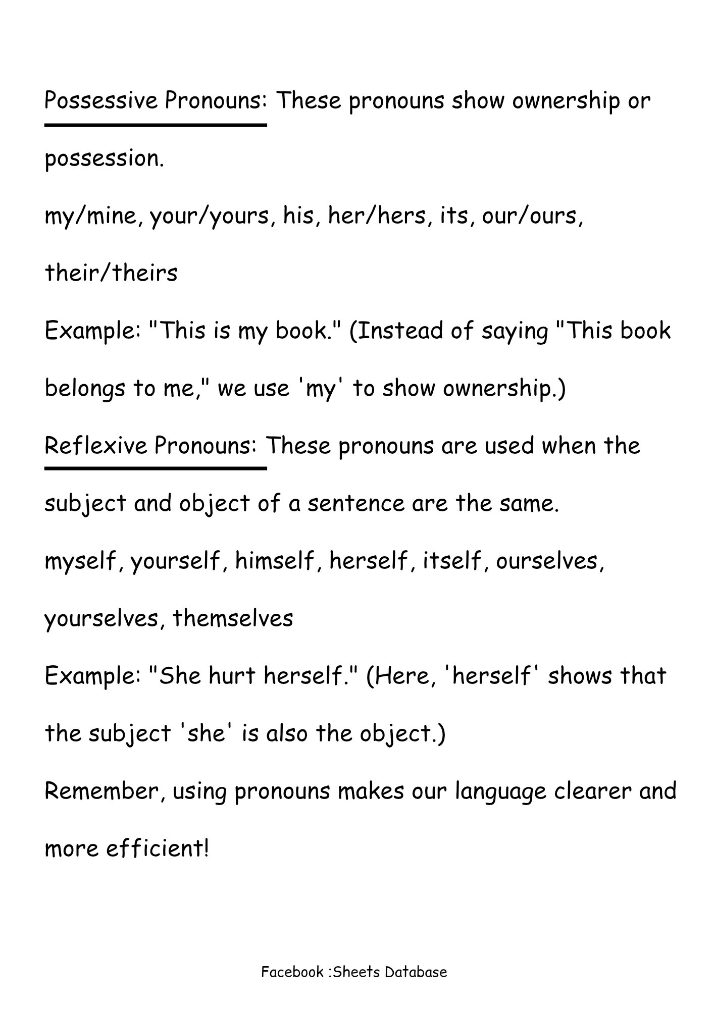 β Subject, object, possessive & reflexive pronouns