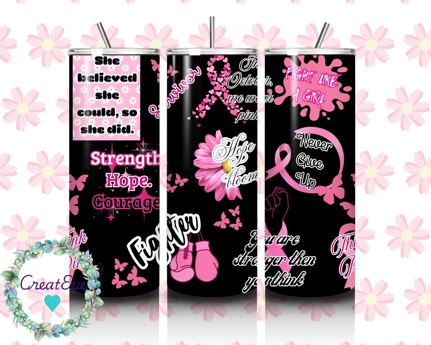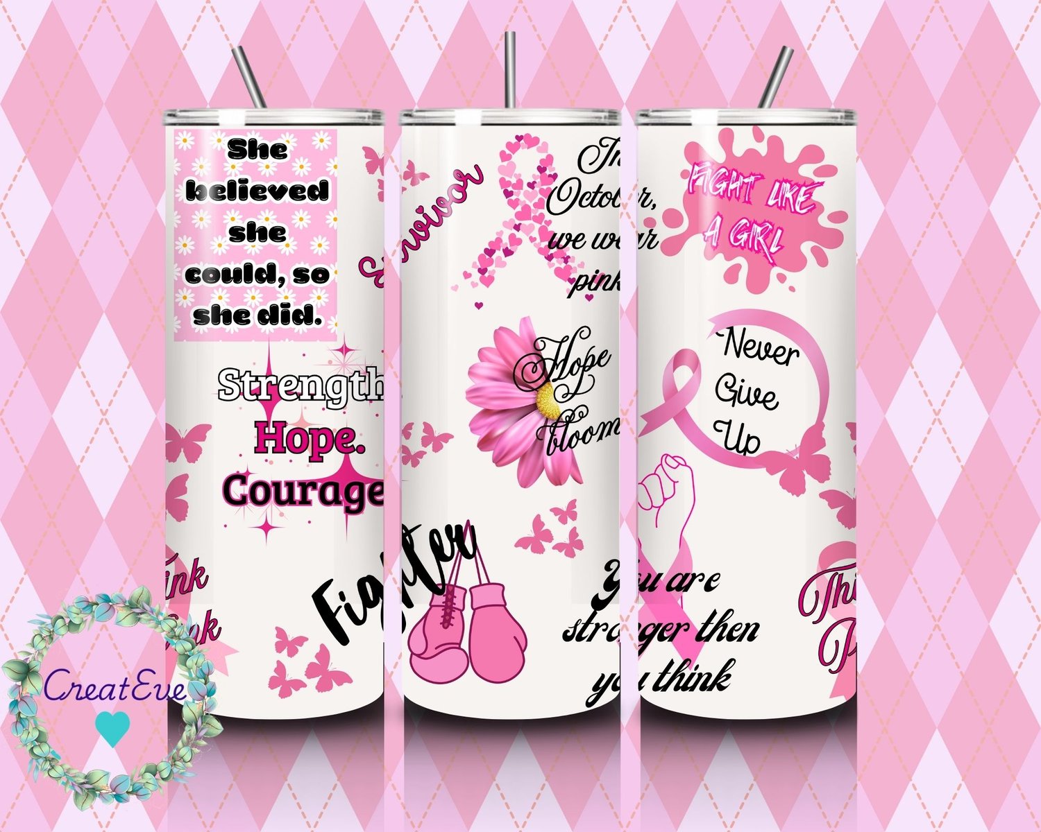 Breast Cancer Pink Ribbon Motivational Quote 20oz Tumbler Wrap 4 Background PNG Bundle