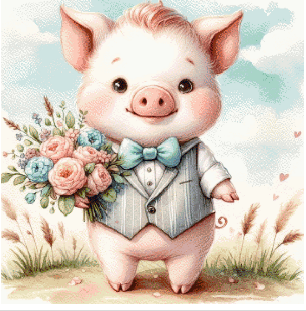 Gentleman Pig Cross Stitch Pattern PDF Instant Download