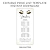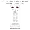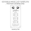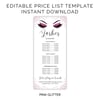 Lashes Menu List with Glitter Effect | Lashes Editable Price List | Makeup Editable Price List