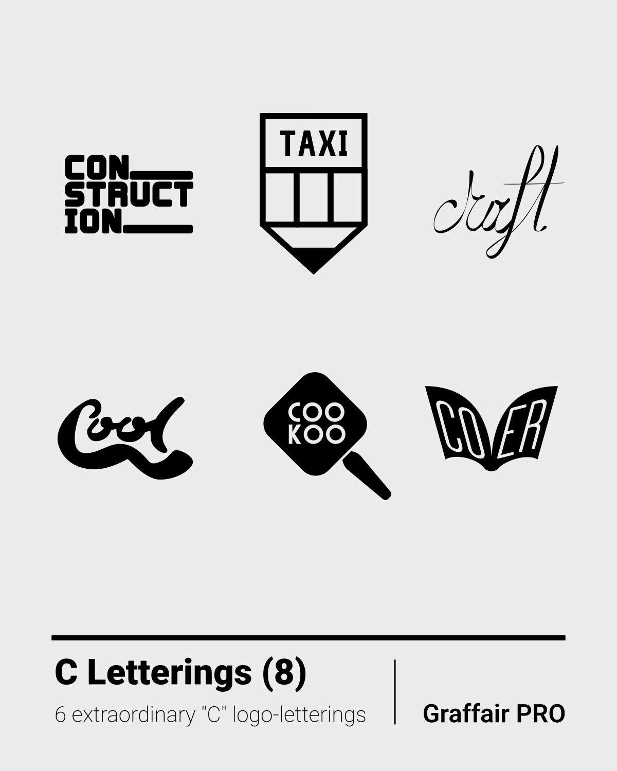 C Letterings (8): The eighth set of "C" logo/letterings with 6 original designs. These letterings are included among 800 other extraordinary ones in the "800 SVG Letterings" bundle edition.