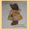 They are cotton fabric hand stitched onto cotton muslin and then a running stitch of embroidery floss outlines with small flowers embroidered on the bonnets. They are perfectly rustic and vintage looking but certainly not professionally hand stitched. There are slight discolorations in the muslin on some of the blocks but nothing that will detract from their charm.