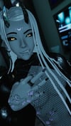 Jacket, top, pants, boots, hair, all jewelry, horns, tail, oni mask, glasses, blindfold, split tongue (mapped to head texture) and all the textures to it are made from scratch by me in Blender and Substance Painter.