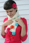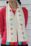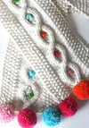 This is a cable scarf pattern that uses scrap yarn to add bobble in different colors as you go.