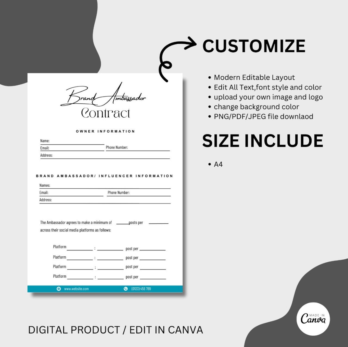 brand ambassador contract, social media influencers contract