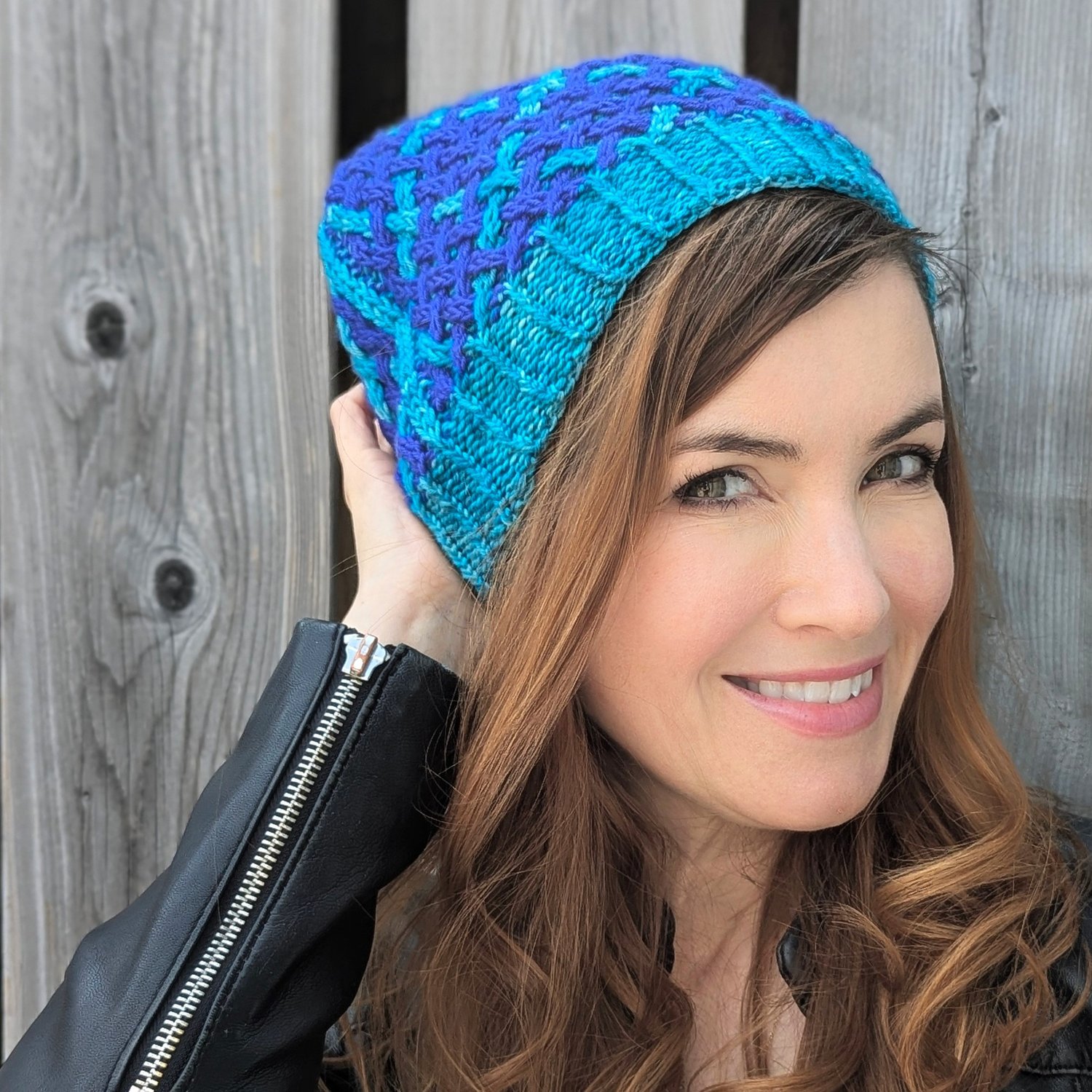 If you're looking for a project that's a satisfying challenge and a great introduction to the magic of woven knitting, this is the perfect pattern for you. It's the gateway to Four-Colour Two-Pass Woven designs!