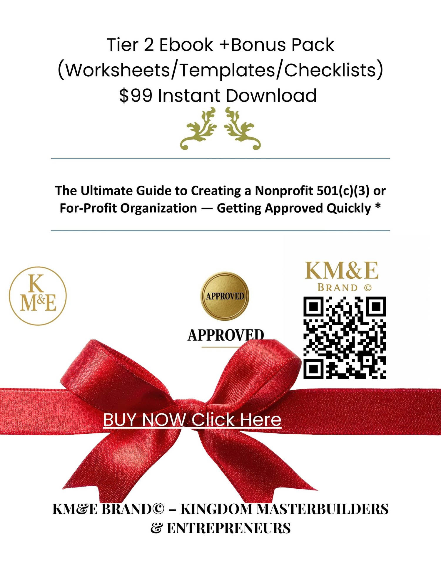 Tier 1 — Ebook Only $49 You will receive: The Ultimate Guide to Creating a Nonprofit 501(c)(3) or For-Profit Organization — Getting Approved Quickly *