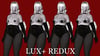 Custom mesh and textures; heel is a purchased, licensed asset that has been modified. Created with Blender, Substance Painter, and Photoshop. Thumbnail shows outfit on Resonance (flat) with Customize+ on.