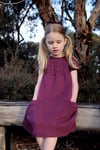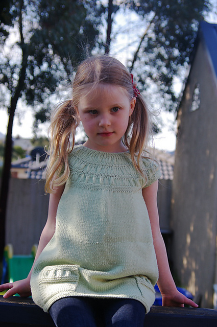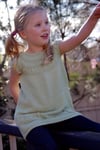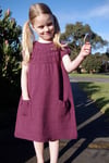 Caesia is an easy to knit and simple to wear garment inspired by outdoor play and Australian flora. Caesia can be knit as either a dress or tunic and features a gathered circular yoke and touches of gathering on generous pockets perfect for stuffing with treasures and wildflowers.