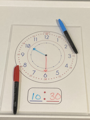 - Write and Erase Convenience: Print the clock face and slip it into a dry-erase sleeve. This allows for repeated practice using dry-erase markers. Use black for a classic look or the designated red and blue for a more vibrant approach!