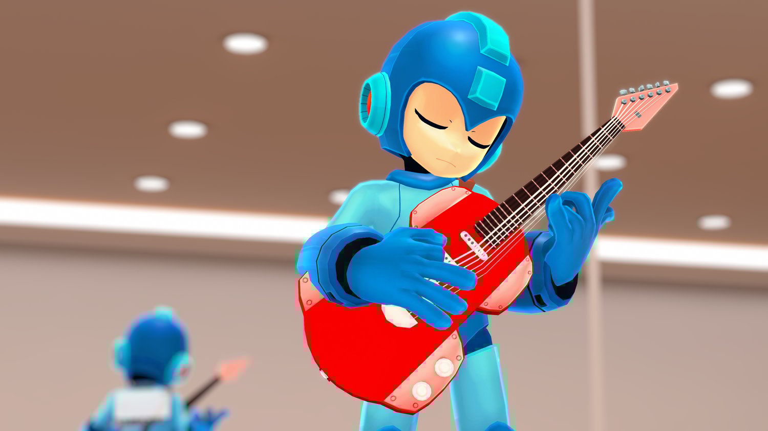- Removable helmet with fully modeled hair underneath and a cool guitar!