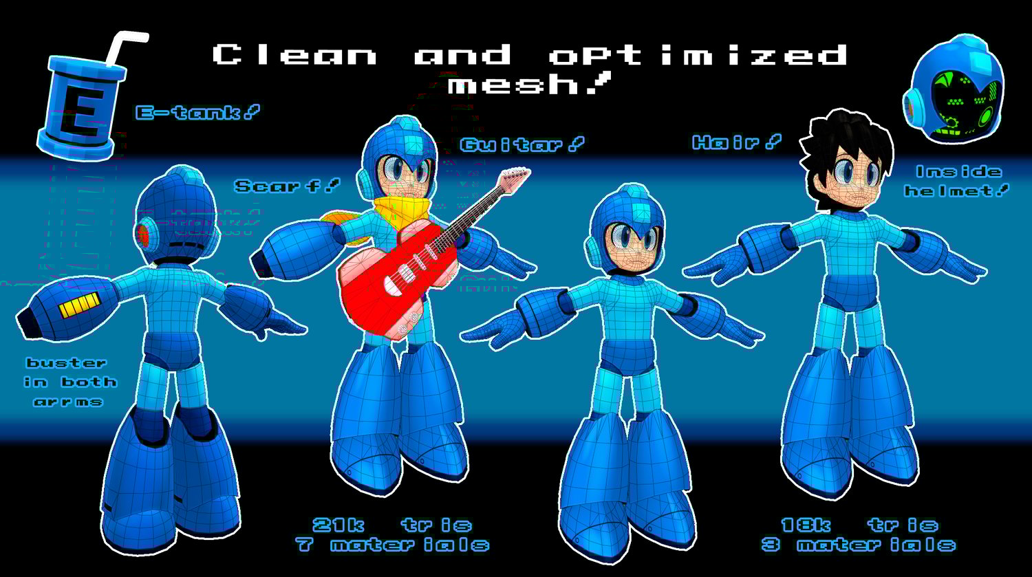 - Blue Bomber 3d model, optimized FBX mesh and textures!