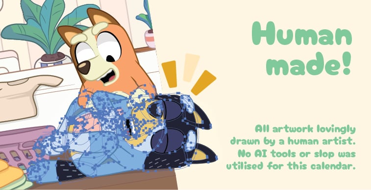 dogdays is an unofficial Bluey fanart calendar by dm29/judacris.