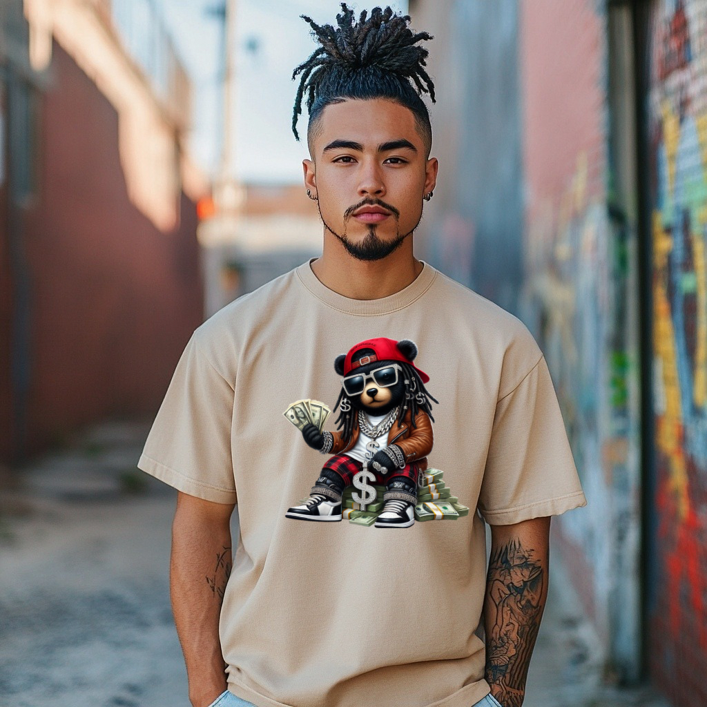 Money Stacking Bear PNG – Hip Hop Rapper Style Digital Design